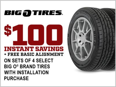 Discounts on tires for cars trucks and SUVs. Visit us today Big O Tires has over 400 automotive service shops in nearly 20 states ready to service your vehicle from new tires to automotive repair maintenance. 800 am - 600 pm.